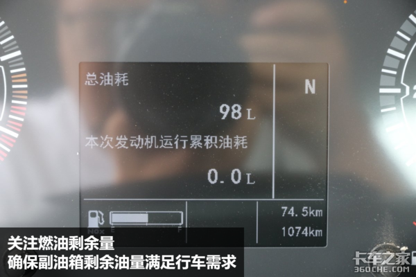 1、关注燃油剩余量 双腔油箱相当于两个独立的油腔,每个油箱内配备了独立的油量传感器,通过切换供油系统,在仪表上也能显示供油油箱的油量。一般情况下,副油箱的容积普遍偏小,所以在启动车辆之前要特别留意副油箱的燃油剩余油量,确定副油箱剩余油量是否能满足行车需求。