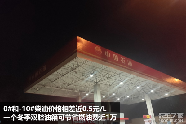 现在0号柴油的行情价大概是6.51元/L,-10#柴油的价格大概是7.01元/L,两种柴油的售价差了近0.5元,在这样的情况下,以一辆牵引车百公里油耗30L计算,一个月车辆如果运行2万公里,那么一个冬天下来,大概在燃油成本上可以给卡友节省近一万的燃油费用。