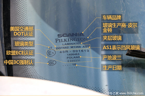 6、通过挡风玻璃上的数据查看挡风玻璃的生产日期,挡风玻璃最下面的“····16”是生产日期代码,“16”代表生产年份,如果挡风玻璃上的生产日期比车辆的生产日期更晚,那说明挡风玻璃可能因为事故进行过更换。