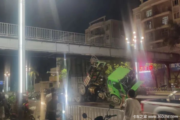 7月31日,货车驾驶人曾某驾驶一辆重型自卸车于东莞凤岗镇清凤路发生事故。该车与人行天桥桥底发生了碰撞,车身直接竖直地挂在了大桥上,车头也横向45度扭转。该车辆和人行天桥都受到了不同程度的损坏,十分惊险。