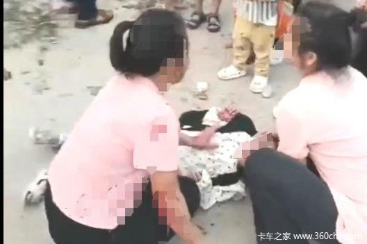 另一视频显示被撞校车一侧变形严重,车顶凸起,人们将车上的孩子纷纷报下,其中有两名小孩躺在地上,身上、地上有多处血迹,疑似受伤。
