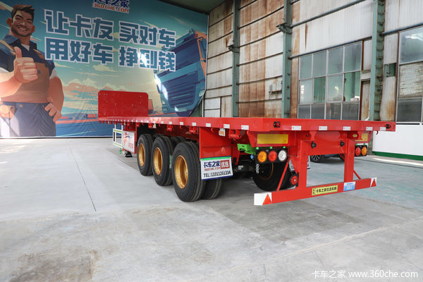 首先,我们先来看看标准配置的挂车参数:该挂车形式为13米平板半挂车,大梁采用了上7mm,下9mm,立5mm规格的宝钢材质直梁样式,强度高、韧性大、承载力更大,边梁采用了14#高强折弯件设计,车架主体结构,全部采用高强材质,每台车23根+;每根采用5道弯样式增加与底板的接触面,作用保护底板不变形,加3道铺底顺称,可叉车开到底板装卸货保证底板不变形。
