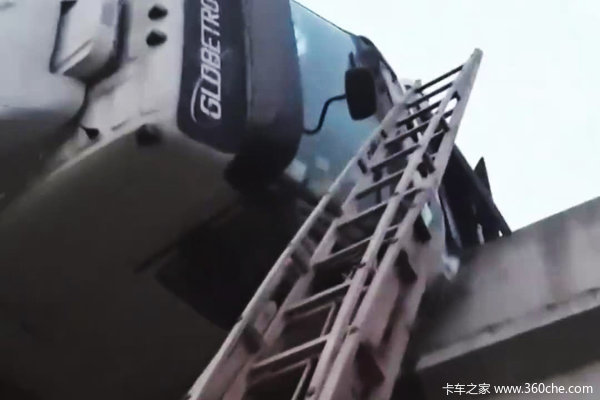 救援人员迅速赶到现场,与车主进行沟通后得知,驾驶员身体状况良好,可以自行通过梯子撤离。