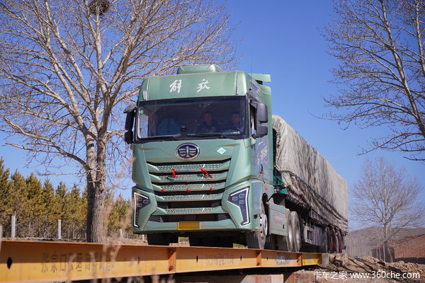 在紧锣密鼓的装车完毕后,陈师傅驾驶着整车总重50吨的新JH6出发了。2500km左右的运输里程,陈师傅计划在3天内到达,其一是这趟为绿通运输,走高速既能省钱,又能提高运营效率。