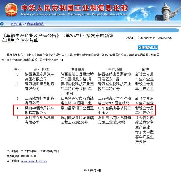 华瑞即将取得公告资质徐冲2013-08-22注:本文为卡车之家原创,版权归卡车之家所有,任何媒体、网站或个人如转载、引用时,请须注明“来源:卡车之家,并标明作者”,对于侵权行为,卡车之家保留起诉权利。车展