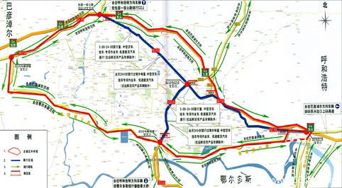 9月10日起,限行时间内(5:00-24:00),110国道过境货运车辆需绕行G6高速或南绕城公路。由东向西行驶的过境车辆可绕行德胜泰黄河大桥经鄂尔多斯去往巴彦淖尔方向;由西向东方向行驶的过境车辆可经包固一级公路、S311省道绕行去往呼和浩特方向。