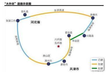 二环中的内环即北京七环,又称首都环线通道,指的是北京大外环高速,亦称北京七环,长约940公里,经过廊坊、涿州、张家口、承德、平谷等地。外环指京津冀区域环线通道,长约1250公里,经过天津、廊坊、保定、张家口、承德、唐山等地。