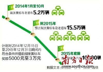 在实施奖励政策的基础上,广州还将进一步促进加快淘汰黄标车。市环保局副局长章威表示:“在2014年底前广州增加电子与100个以上,在2015年将限行区内所有新型电子警察用于黄标车限行执法。结合交通行业节能减排工作,督促道路运输企业及所有人提前淘汰营运黄标车。在2017年前在全市行政区域内禁行黄标车。”