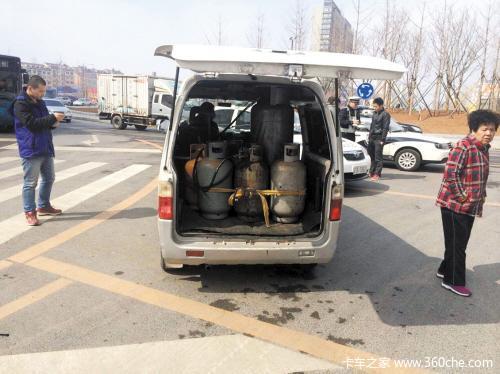 面包车靠路边停下后,司机孙某不停地抱怨“说的不能拉不能拉,老板就是不听劝。”孙某称,他是市区某燃气公司的司机,早晨老板接到南郊一家餐馆要液化气的通知,便将12个液化气罐装在面包车内,让自己去送货。
