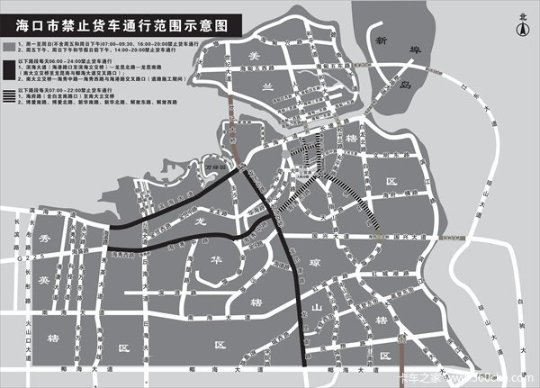 海口市禁止货车通行范围示意图