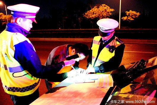 山东省高速公路规定:晚上7时以后,禁止危化品运输车驶入山东境内,很多通过京沪高速驶往山东的危化品车辆在夜间折返回到江苏境内。徐州高速七大队管辖的京沪高速新沂东收费站危化品车流量大幅提升,带来很大安全隐患。为此,徐州高速七大队民警在夜间对进入辖区的危化品运输车开展专项检查。