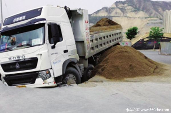 【卡车之家 原创】6月2日凌晨1时许,兰州市九州主食厨房园区丁字路口的两处路面突然发生塌陷,一辆满载砂子的大卡车车头陷进坑内,一根高压线被拉扯倾斜,危及地下自来水管线。事发后,相关单位紧急赶赴现场抢险。