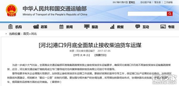 《方案》第12项,天津港不再接收公路运输煤炭。大幅提升区域内铁路货运比例,加快推进港铁联运煤炭。充分利用张唐等铁路运力,大幅降低柴油车辆长途运输煤炭造成的大气污染。7月底前,天津港不再接收柴油货车运输的集港煤炭。9月底前,天津、河北及环渤海所有集疏港煤炭主要由铁路运输,禁止环渤海港口接收柴油货车运输的集疏港煤炭。天津港汽运煤禁入 又有一批兄弟要失业