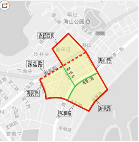 (四)盐田区。盐田中心片区:由海山路-海景路-东和路-海涛路-深盐路(不含)-香径南街-香径东街合围区域。