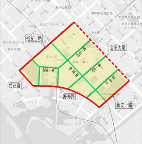 (五)宝安区。海秀片区:裕安一路-宝安大道(不含)-新安西路-海秀路-兴业路合围区域。