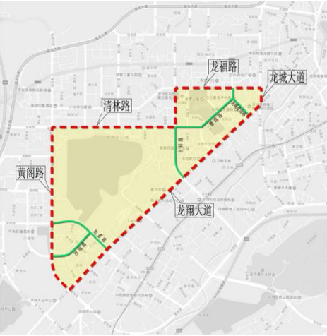 (六)龙岗区。龙城片区:由龙福路(不含)-龙城大道(不含)-龙翔大道(不含)-黄阁路(不含)-清林路(不含)-吉祥路(清林路至龙福路段不含)合围区域。
