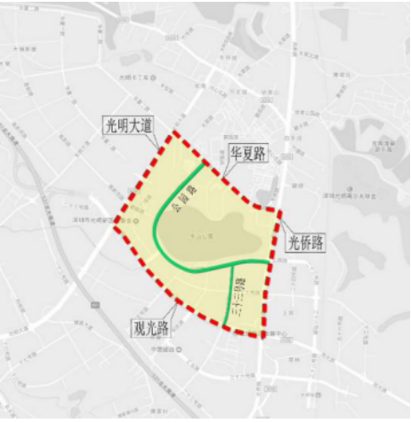 (九)光明新区。光明广场片区:光明广场片区:由光明大道(不含)-华夏路(不含)-光侨路(不含)-观光路(不含)合围区域。
