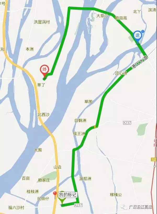 沙田互通→港口大道→X235→洪金路→洪梅互通上高速→南行。