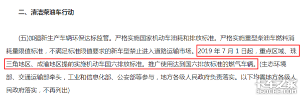 2019年7月1日起,重点区域、珠三角地区、成渝地区提前实施机动车国六排放标准。推广使用达到国六排放标准的燃气车辆。