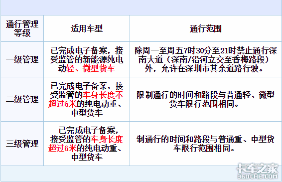 深圳对新能源纯电动物流车辆进行分级管理,等级越高车辆的通行范围越大