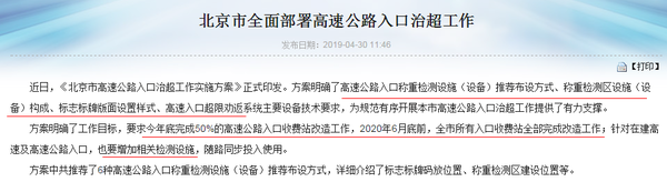 另一方面,全国高速公路入口治超工作也加紧周密布局。例如,北京已经全面部署高速公路入口治超,针对在建高速及高速公路入口,增加相关检测设施,展开高速入口超限劝返等工作。并且要求,今年底完成50%的高速公路入口收费站改造工作,2020年6月底前,全市所有入口收费站全部完成改造工作。(文/张宁宁)