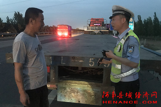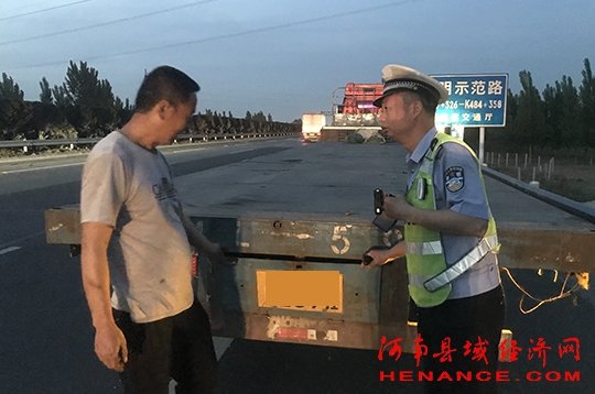 当日晚上20时许,河南省高速交警总队三支队民警袁天顺、辅警张加琪巡逻至京港澳高速公路597公里东半幅,发现一辆冀A号牌的半挂货车占用应急车道和半个行车道停在路边,车后连警示标志也没有设置。