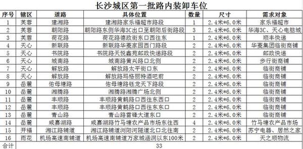 长沙交警决定在建湘路、书院路等道路的16个点位增设首批33个路内装卸车位。