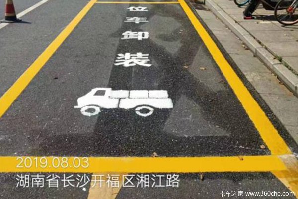 路边新增了长6米,宽2.4米,还有货车图案的车位,驾驶员看到这样的专用车位注意了,不能随意停车,这是路内装卸车位,只允许货运车辆装卸货物时使用。