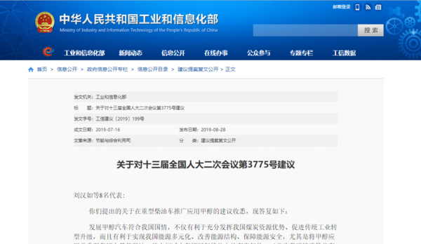 2019年8月28日,据工业和信息化部网站消息,工信部发布《关于对十三届全国人大二次会议第3775号建议》。