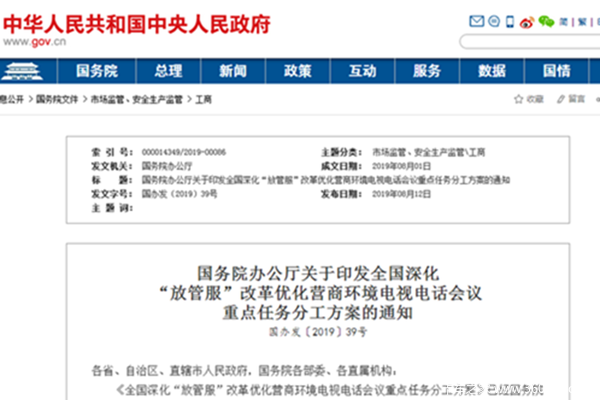 近日,国务院办公厅正式下发了《全国深化“放管服”改革优化营商环境电视电话会议重点任务分工方案》(以下简称《方案》)。