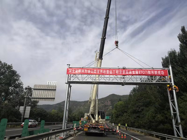 9月11日,京承高速首个ETC门架在承唐互通K796+287北京方向处成功完成吊装,这标志着京承高速在取消高速公路省界收费站工作中取得又一关键性进展。