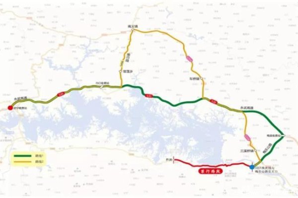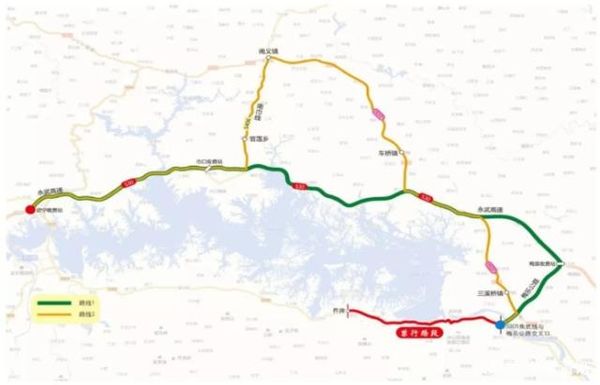 线路二:焦武公路与梅乐公路交汇处梅乐公路高速连接线与G316交叉路口三溪桥白水南义巾口高速收费站武宁高速收费站(全程约83KM)