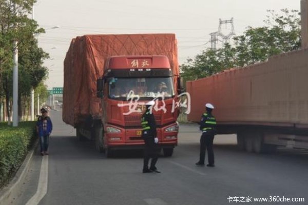 10月17日下午,合肥交警在方兴大道蓬莱路交口开展货车上高架整治行动,对上高架的农用车、货车进行查处。笔者在该路口跨线桥的下桥口看到,当天下午的整治行动共计查处交通违法行为8起,其中违法驶入上跨桥的行为6起 。