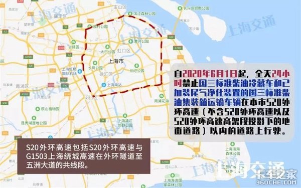 三、自2020年10月1日起,全天24小时禁止国三标准柴油货运机动车在G1503上海绕城高速范围以内的道路上(含G1503上海绕城高速以及G1503上海绕城高速高架段投影下的地面道路)行驶。G1503上海绕城高速包括G1503上海绕城高速与同济路高架共线段和G1503上海绕城高速与S20外环高速共线段。