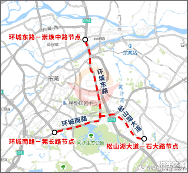 四、环城南路(莞长立交)—环城东路(崇焕中路),八一路(同沙立交)—松山湖大道(石大路)路段,每天7:00-20:00禁止重型载货汽车通行。