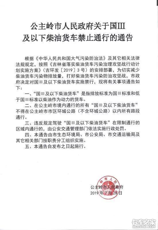 国三及以下柴油货车,不得在公主岭市市区环城公路(不含环城公路)以内所有路段通行。