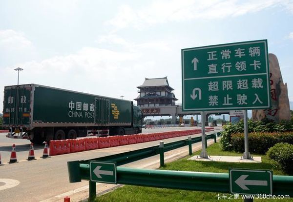 昨天上午,笔者来到高速公路赣榆南收费站看见,收费站的入口都加装了地磅。现场,笔者看见,一辆红色的货车驶过收费站时,在收费站前的显示器上可以看见信息:货5、总重:48.380吨、轴线49.000吨。由于该车是6轴车,轴车的总重也没有超过49吨,通过它的总重显示并没有超限,所以可以通过收费站。
