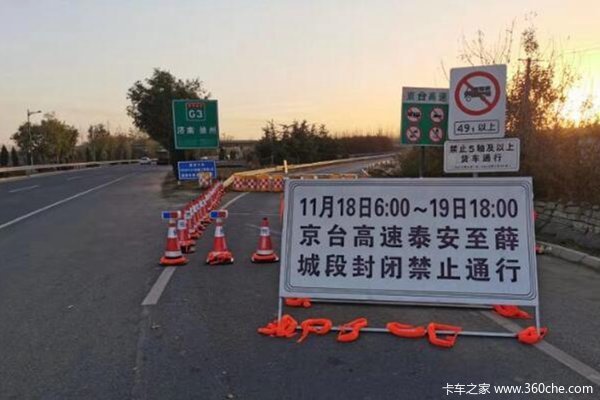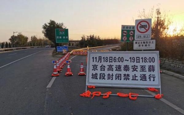 18日早上6点,高速交警对京台高速息陬枢纽立交桥附近匝道进行了封闭,同时,曲阜北,曲阜,邹城,峄山四个收费站双向封闭,封闭时间截止到11月19日下午6点共36个小时。