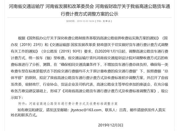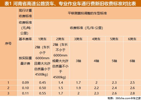【卡车之家 原创】近日,河南省交通运输厅、河南省发展和改革委员会、河南省财政厅联合发布了《关于我省高速公路货车通行费计费方式调整方案的公示》,对高速公路收费的调整方案进行了公示,详细收费标准如下: