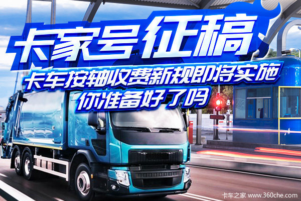 再多的抱怨、质疑也于事无补,公路车辆收费新标准势在必行。我们能做的只能是冷静分析,新规对各个领域从业者将会带来什么影响,如何结合自身状况做最有利的调整,这才是正确的应对之策。还有不到一个月的时间,本期征稿我们就来聊一下按轴收费后影响及应对之策。(卡家号地址:http://nb.360che.com)