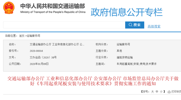 交通运输部办公厅、工业和信息化部办公厅、公安部办公厅和市场监管总局办公厅发布了《关于做好<车用起重尾板安装与使用技术要求>贯彻实施工作的通知》,明确规定尾板再不计入货车总重。原文如下: