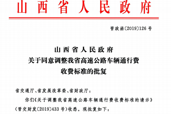 山西:人民政府同意调整我省高速公路车辆通行费收费标准