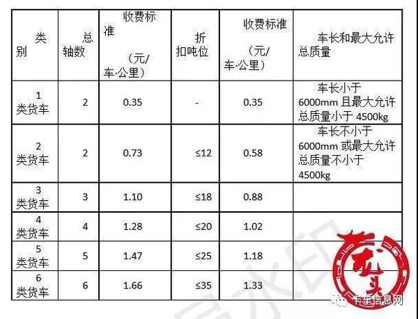 5类货车由1.50元/车·公里调整为1.47元/车·公里,下调0.03元/车·公里;