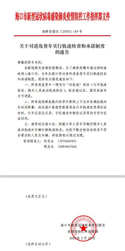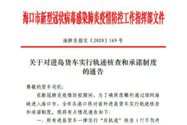周知!海口对进岛货车实行轨迹核查和承诺制度
