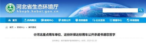 近日,河北省生态环境厅印发《关于加快建立重点用车单位重型柴油车污染防治责任制和环保达标保障体系的通知》,制定了《重点用车单位环保达标用车公开承诺书(样本)》。