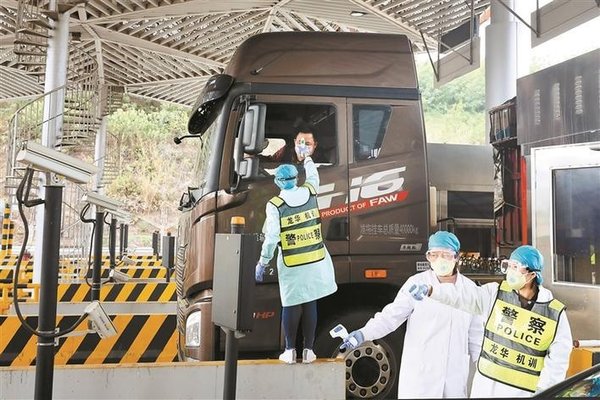 提前申报车辆通过检疫点的,请走提前申报通道,戴好口罩摇下车窗、接受体温检测,提前申报车辆在报备并检测体温无异常的,可以经已检通道通行。