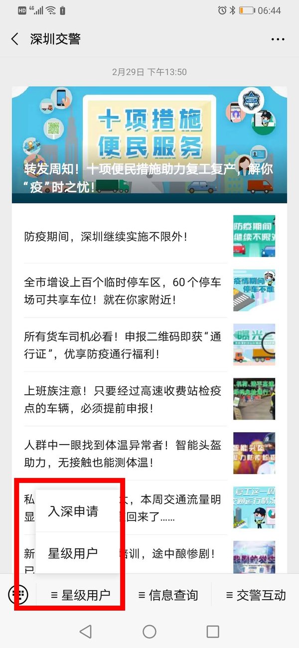 入深申请目前有很多渠道可以办理,深圳卡友推荐的是在深圳交警的微信公众号上进行登记。点卡深圳交警公众号,在下方找到星级用户按钮,点击就能看到入深申请选项。然后根据申请的要求填写信息即可。