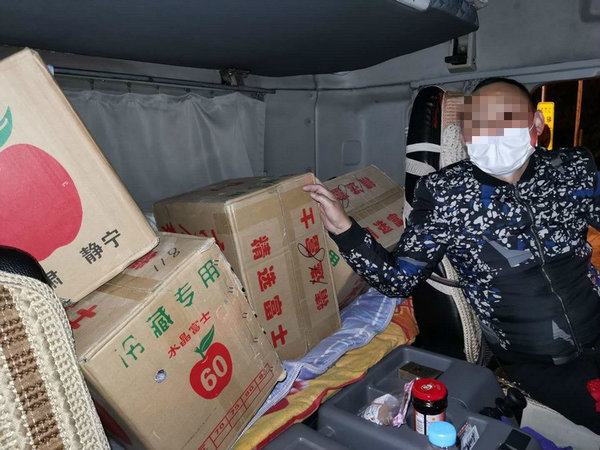 据重庆市交通运输行政执法总队高速公路第三支队四大队执法人员介绍,3月11日,他们巡逻至包茂高速酉阳县板溪镇附近时,发现湘J籍货车和渝H籍小车停驶在板溪下道匝道口应急车道上,便立即上前查看,发现两车正在转运苹果,随即对其进行制止并欲带下高速进行处罚。