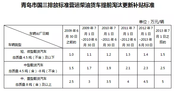 市南区、市北区、李沧区、崂山区、城阳区(含青岛高新区)、西海岸新区注册登记营运手续的国三排放标准营运柴油货车。