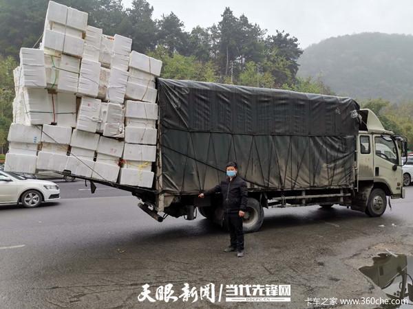 “货车后面载的货物左摇右晃,随时都有掉下来的可能。”民警赶紧示意货车驾驶员靠边停车。车停稳后民警发现,原本轻型栅栏式货车被加装了一个电动车厢门,驾驶员将该车厢门放平用于运载泡沫箱,几十个泡沫箱被松散的绑在车厢门上。